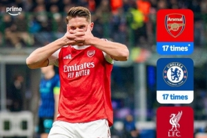 体育资讯1月21日讯 亚马逊Prime报道,阿森纳是进入欧冠16强次数并列最多的英格兰球队。