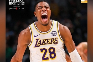 詹姆斯转发了八村塁在昨日客场击败独行侠比赛中命中关键三分的怒吼庆祝照,并写道:“大心脏黑武士🥷🏾”