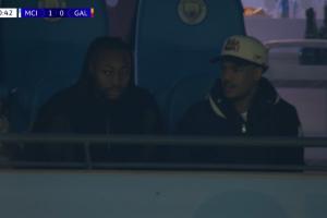 比赛第21分钟,转播镜头拍到因伤缺阵的曼城边锋鲍勃出现在现场观众席,与球队冬窗引进的新援塞梅尼奥一起观看比赛。