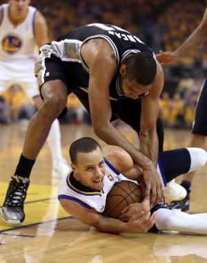 比赛首节,库里右侧45度撤步三分轰进,拿到本场首分。