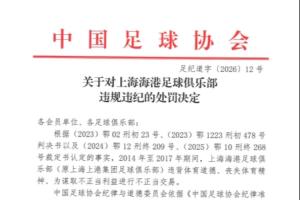 一、扣除上海海港足球俱乐部2026赛季相应的职业联赛积分5分;