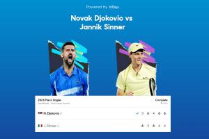 体育资讯01月30日讯 澳网男单半决赛,38岁德约科维奇战胜24岁辛纳进决赛。