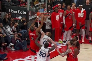 GIF-奎克利抛投涮出来,巴恩斯补扣被吹干扰球,猛龙挑战失败