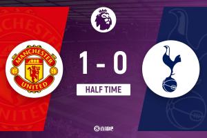 第38分钟,曼联战术角球开出,底线位置梅努低平球传到禁区内,姆伯莫精准推射破门!曼联1-0领先热刺↓