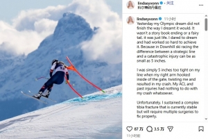 林赛·沃恩告别冬奥会:遭胫骨骨折需多次手术,但我为梦想尝试过