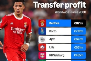 体育资讯2月17日讯 亚马逊统计表明,本菲卡是21世纪转会收入最多的俱乐部。