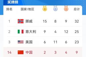 一日双金!冬奥会奖牌榜:中国2金3银4铜,排名升至第14!