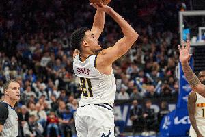 本赛季至今,琼斯代表掘金出战46场比赛,其中首发34场,场均贡献6分,三分球命中率达到41.4%。