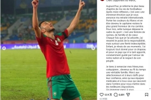 35岁的罗曼·赛斯司职后卫,他为摩洛哥国家队出场86次,贡献3球1助。他在Instagram发文如下: