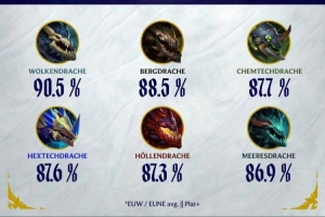 体育资讯2月24日讯 英雄联盟官方公布欧洲服务器龙魂胜率:只有风龙魂胜率超九成。