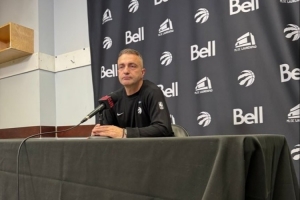 赛后,猛龙主教练拉贾科维奇被问及球队最后时刻得分困难的话题,他说:“我认为对手有太多非法拉拽和抱人动作。”
