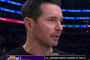 转播方晒出数据:湖人领先结束上半场时,本赛季战绩24胜2负,联盟最佳。