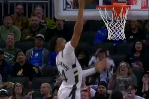 GIF-字母哥反击打布克扣篮没扣进,自己又补进