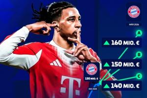 体育资讯03月17日讯 德转将在3天后更新德甲球员身价,今日德转官方预热奥利塞身价,将必定上涨,最高涨至1.6亿欧。