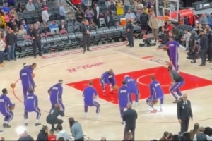 赛前,篮球评论员王猛晒出现场视频,并写道:“湖人赛前仪式结束,一个都没进,但还挺逗。”