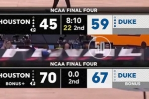 ESPN数据显示,终场前3分03秒,杜克以64-55领先,当时他们的胜率高达95.2%,但随后蓝魔进攻断电!最后33秒,休斯敦轰出9-0进攻高潮极限翻盘。