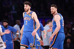 本场比赛,雷霆首节就大比分领先,内线双塔哈滕和切特都没有怎么发力就打卡下班,二人均出战不到21分钟。