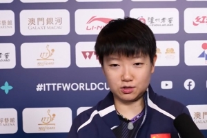 体育资讯4月5日讯 乒乓球世界杯女单决赛,孙颖莎4-1王曼昱,实现三连冠。赛后,孙颖莎接受现场记者采访。