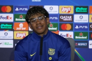 体育资讯4月13日讯 北京时间4月15日3:00,巴萨将在欧冠1/4决赛次回合客场挑战马竞,首回合巴萨0-2落败。赛前,巴萨前锋亚马尔出席新闻发布会。